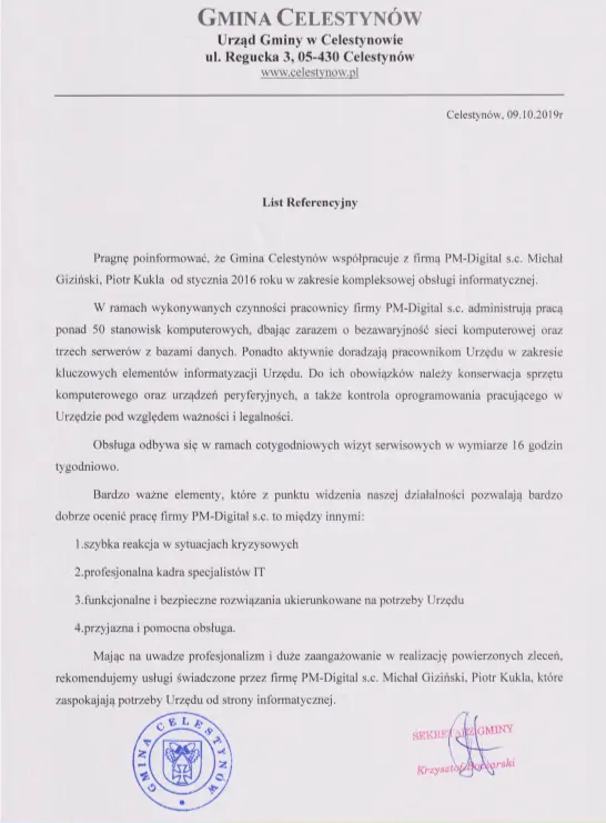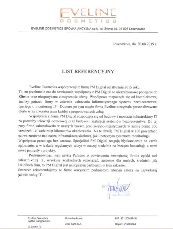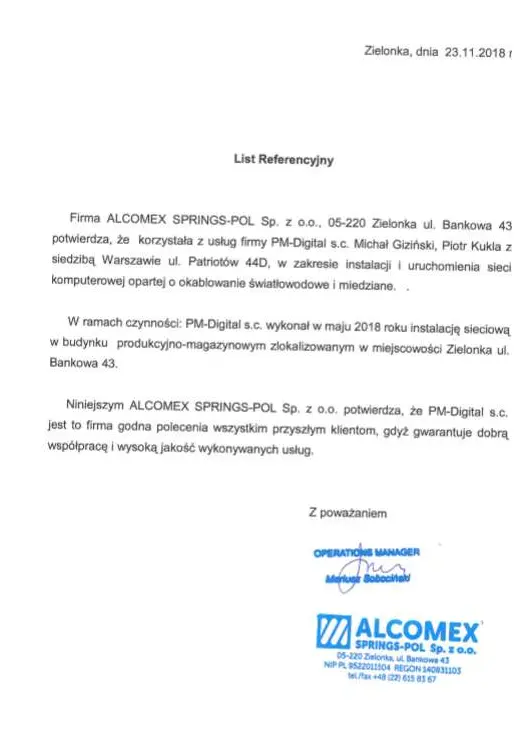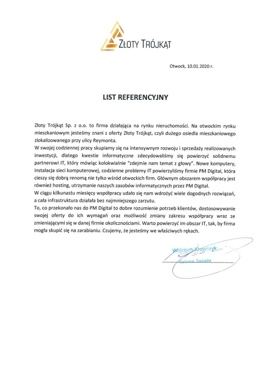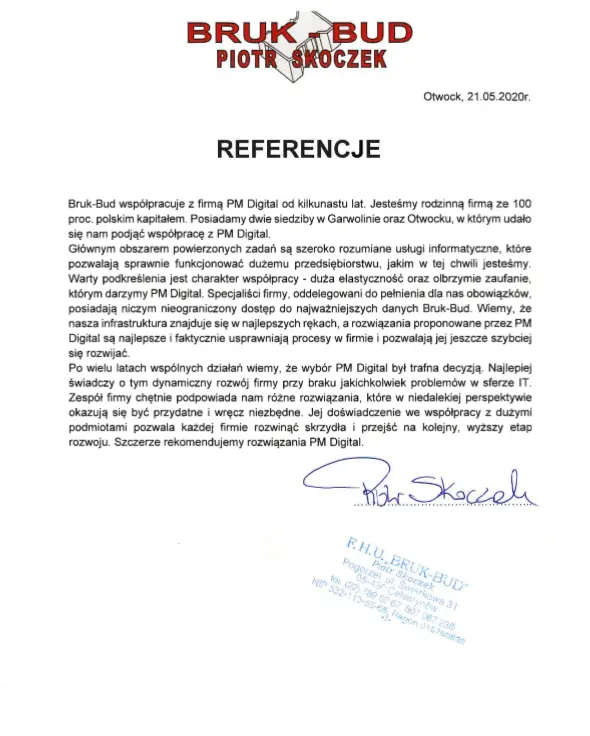 Zapraszamy do zapoznania się z wybranymi referencjami od klientów, z którymi mamy przyjemność współpracować. Mamy nadzieję, że dołączą Państwo do tego grona, a jeśli ich słowa nie są dla Państwa wystarczające, zachęcamy serdecznie do kontaktu. Stworzymy dedykowaną ofertę na usługi, których Państwa firma naprawdę potrzebuje, które usprawnią procesy w firmie, jednocześnie optymalizując koszty IT .